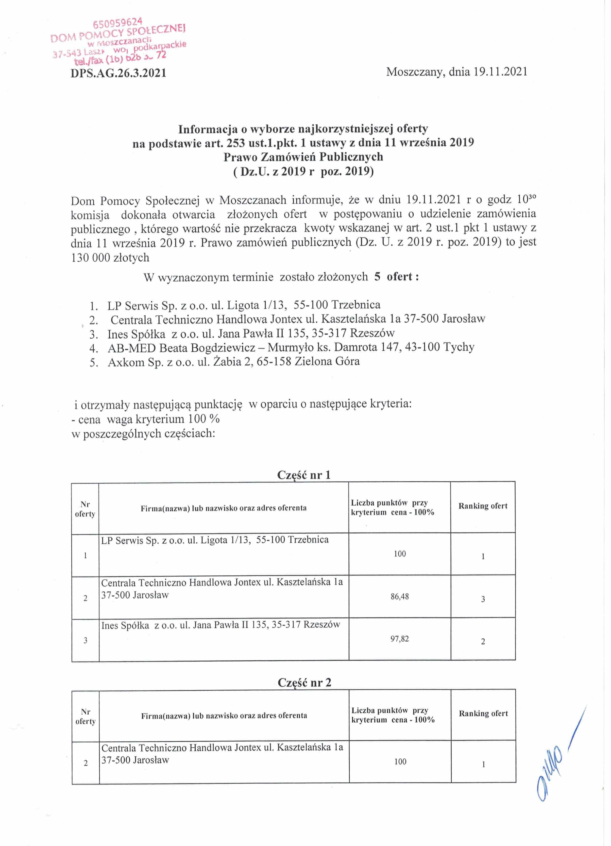 Informacja z otwarcia ofert 19.11.2021 r
