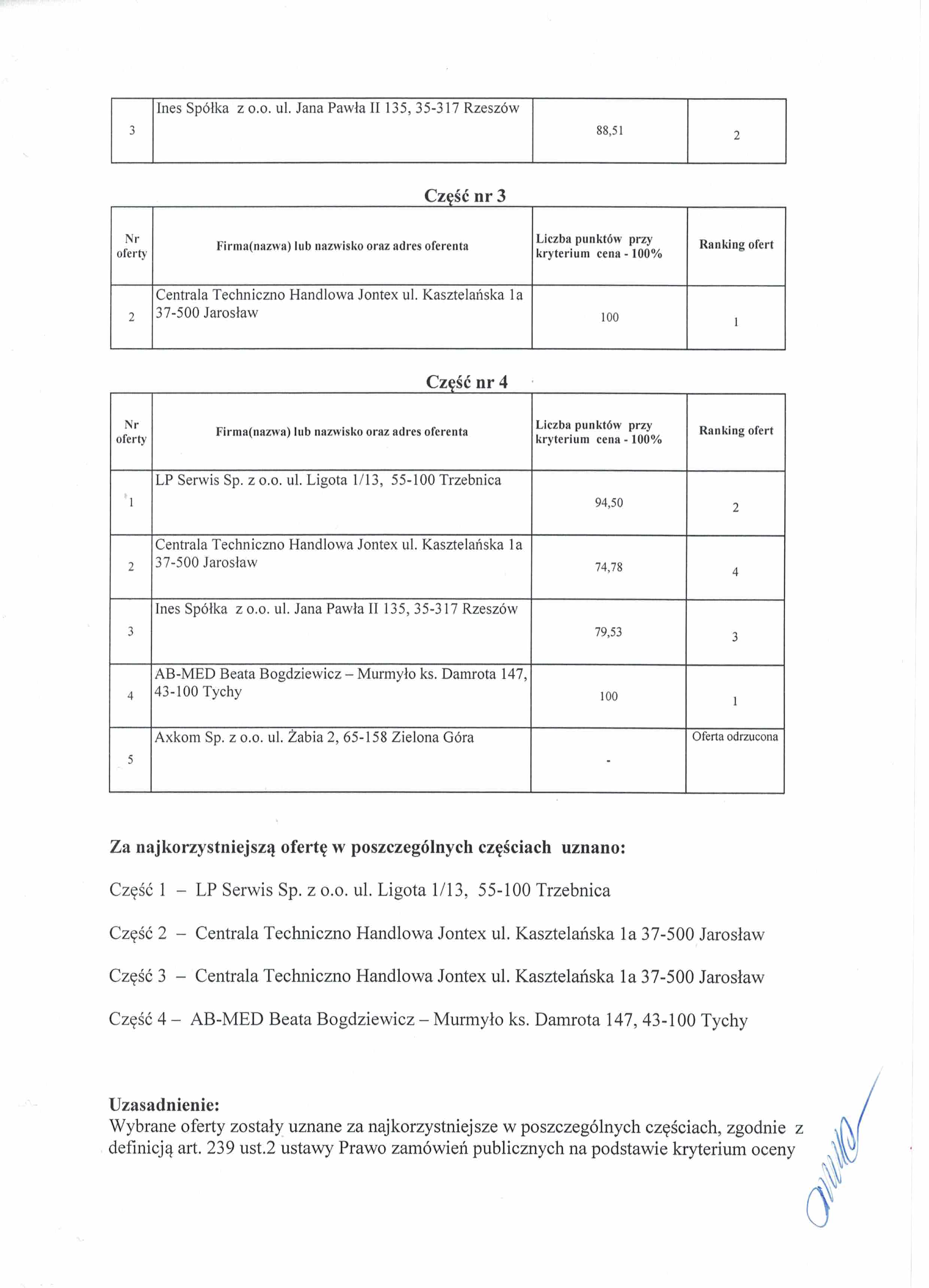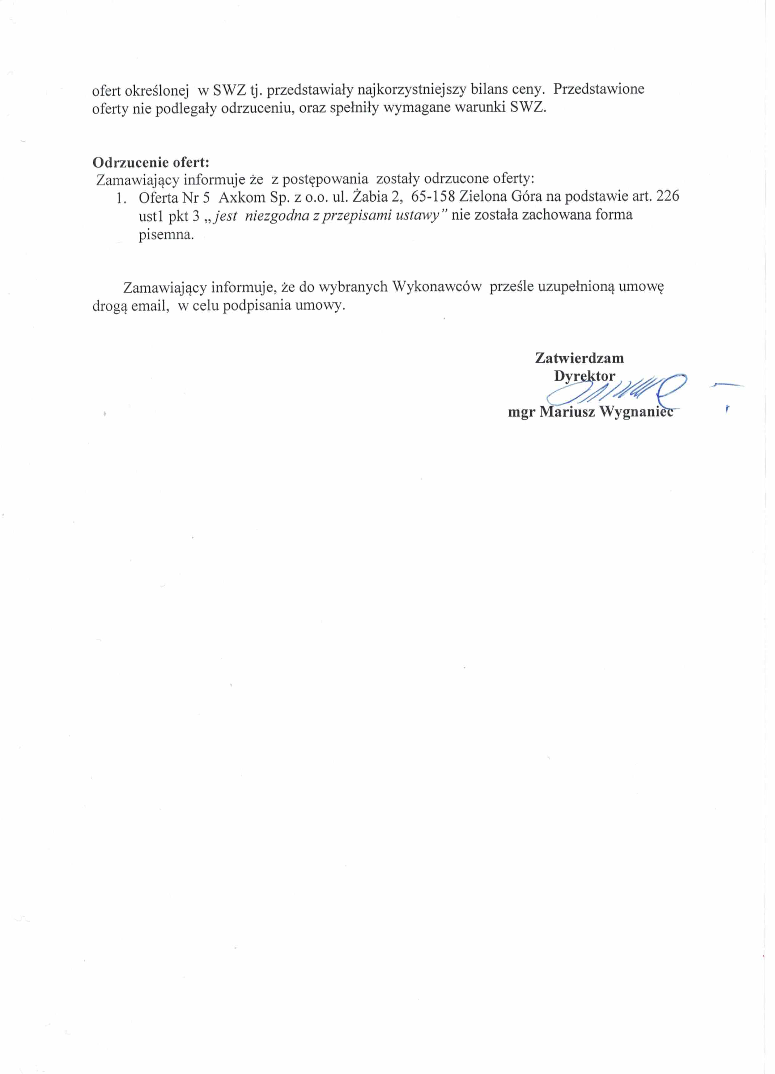Informacja o wyborze ofert c.d.